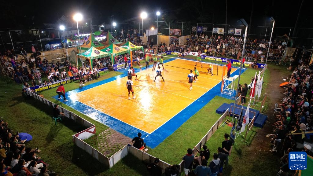 11月13日,在印度尼西亚东爪哇省布尔沃索诺村排球场,观众观看排球比赛。