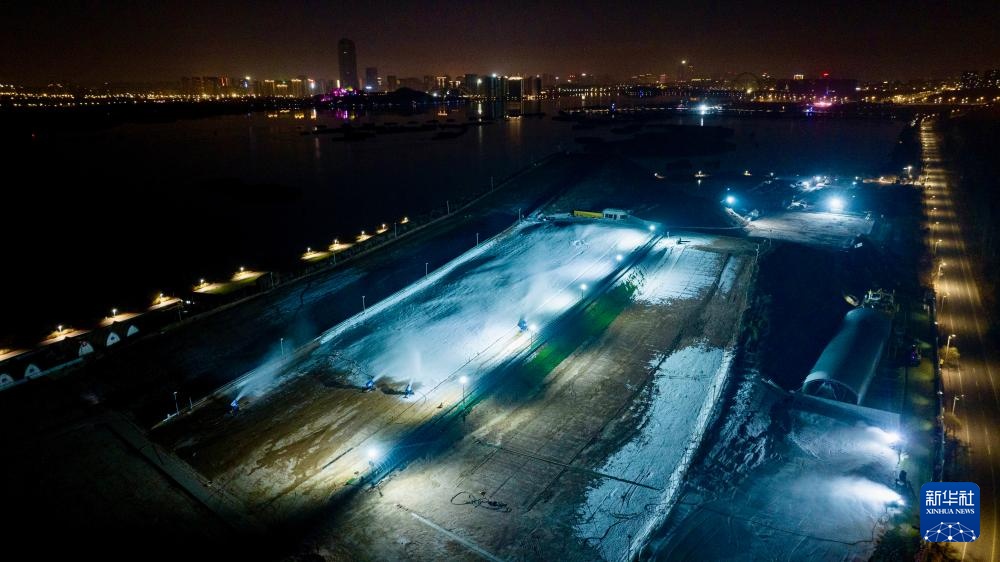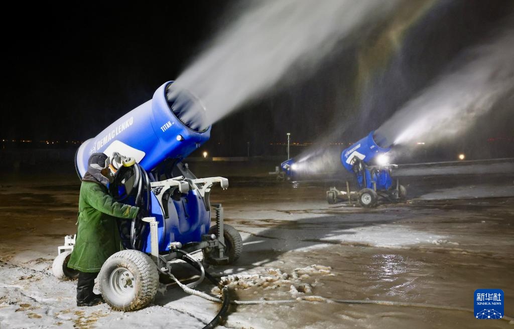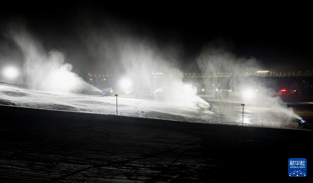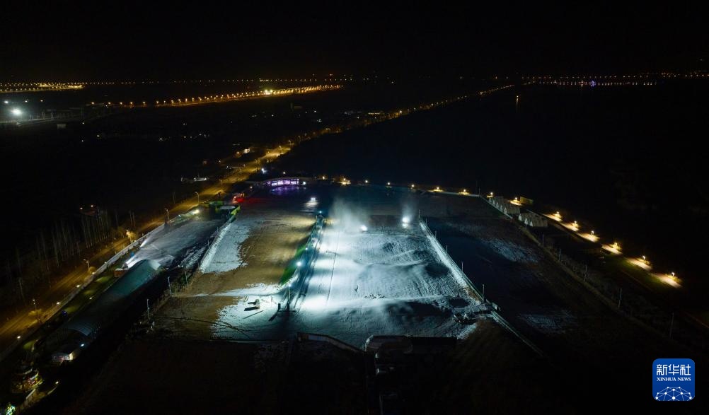近日,宁夏银川市夜间气温持续走低,银川市各滑雪场工作人员抢抓最佳作业窗口期,推进雪道塑形、设备调试及造雪等工作,迎接即将到来的冰雪旅游季。