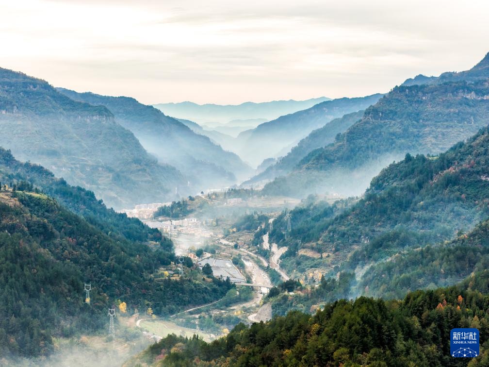 这是11月22日拍摄的重庆市石柱县中益乡景色(无人机照片)。