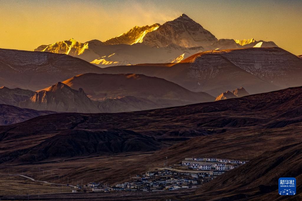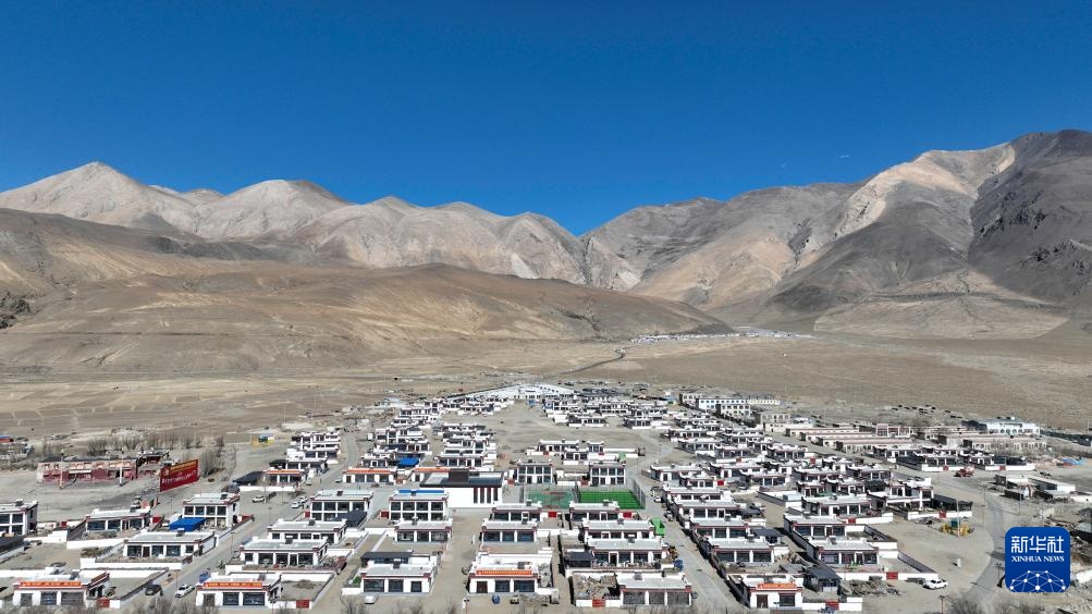 珠穆朗玛峰脚下的西藏定日县措果乡野江村,靠近珠峰方向为建成并交付群众使用的新房(11月12日摄,无人机照片)。