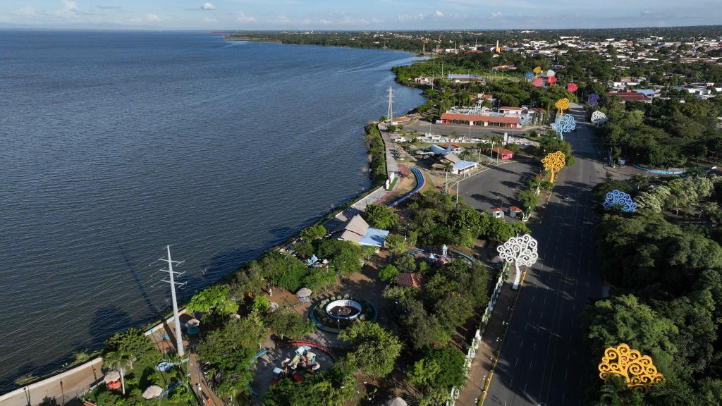 11月17日在尼加拉瓜首都马那瓜拍摄的马那瓜湖(无人机照片)。