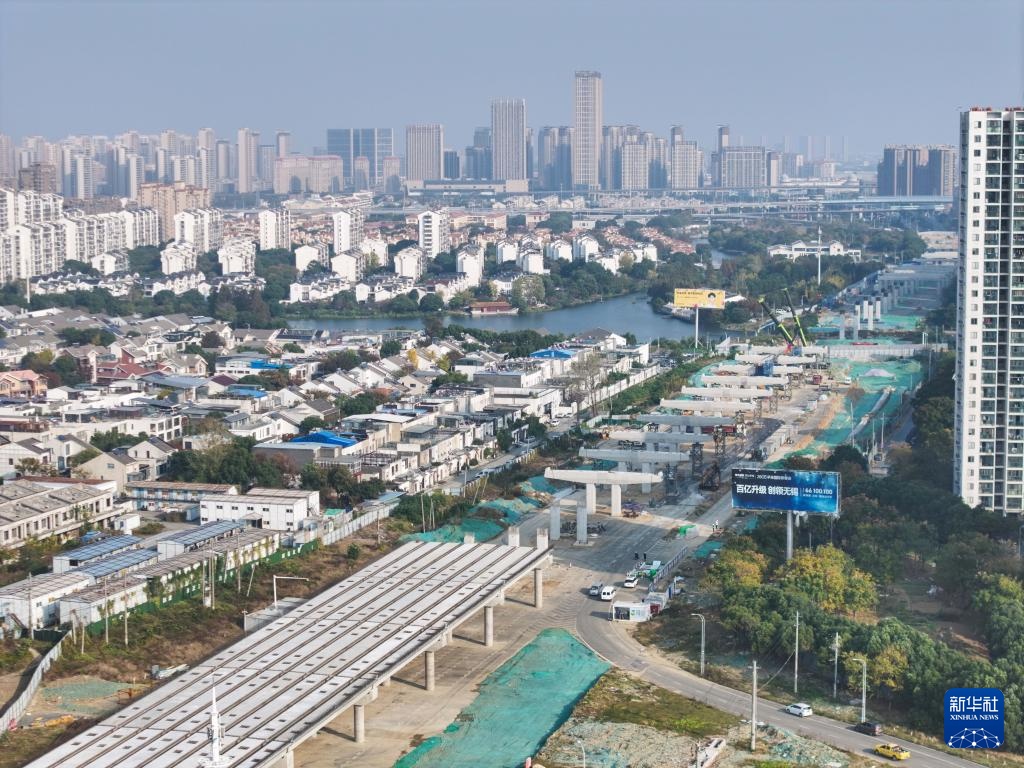 这是11月24日拍摄的312国道无锡凤翔路至广石路段工程11标施工现场(无人机照片)。