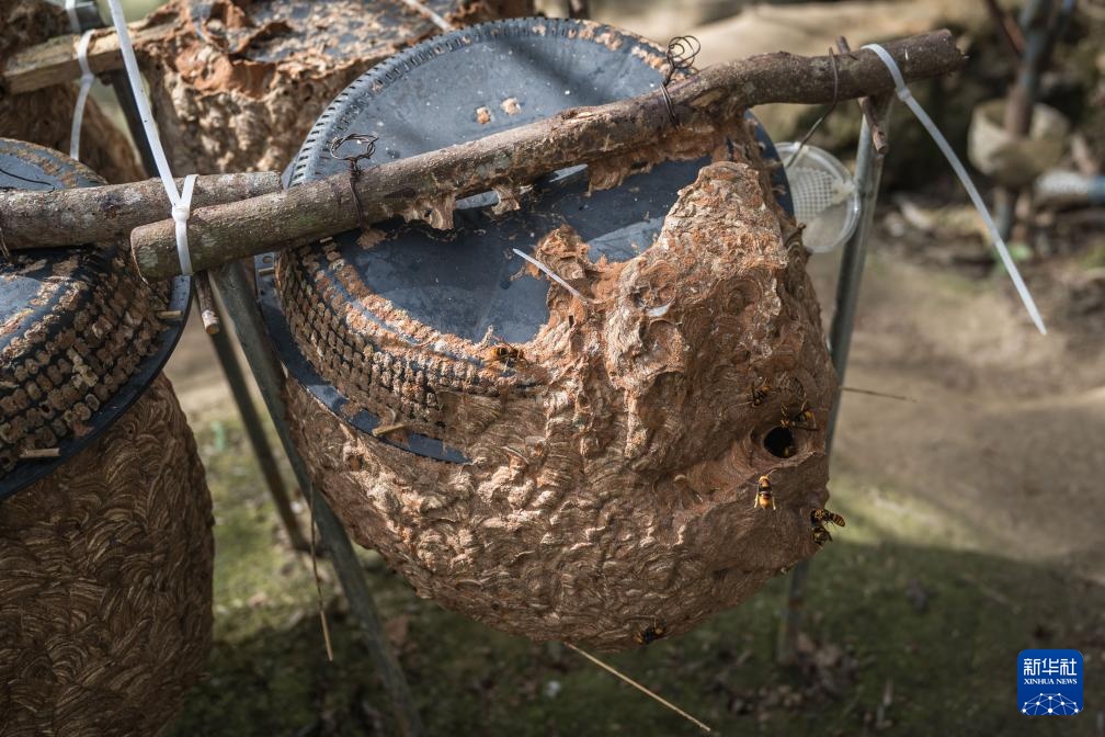11月19日,在云南省保山市龙陵县龙山镇河头村,村民查看养殖的胡蜂。