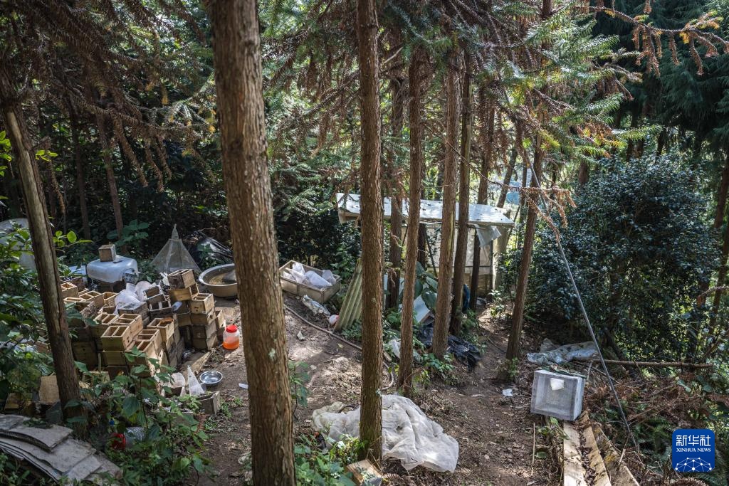 11月19日拍摄的云南省保山市龙陵县龙山镇河头村村民用于养殖胡蜂的门外棚房。