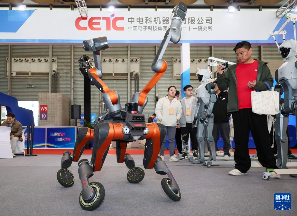 11月25日,中国电子科技集团公司第二十一研究所研制的半人马机器人在展会现场进行演示。