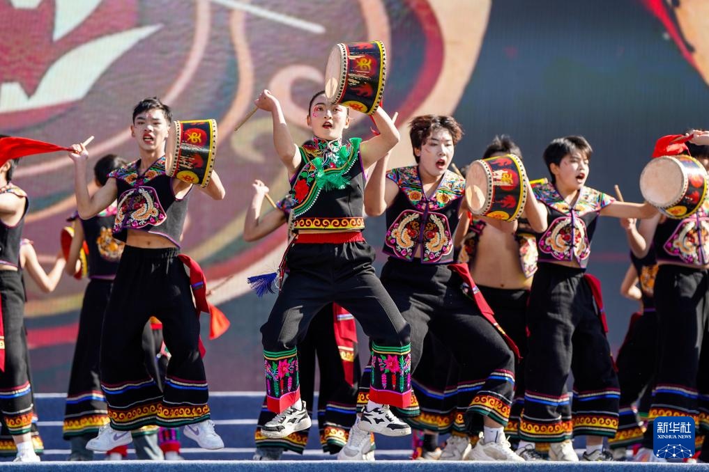 11月25日拍摄的禄劝彝族苗族自治县成立40周年庆祝大会现场(无人机照片)。