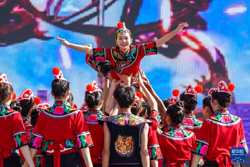 11月25日,演员在庆祝大会现场表演文艺节目。