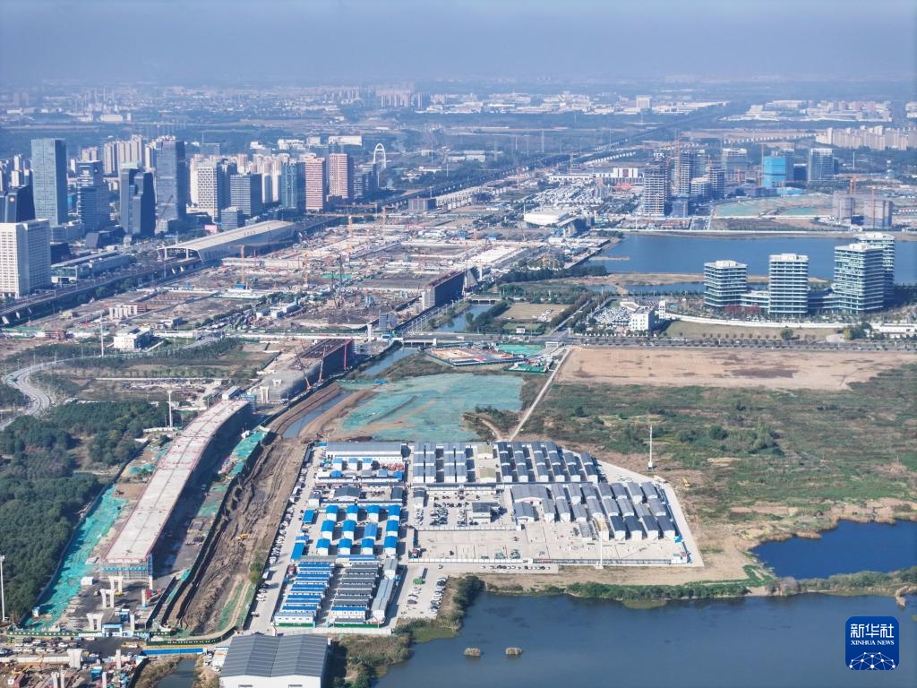 这是苏州北站新时代建筑工人社区和周边建设现场(11月13日摄,无人机照片)。
