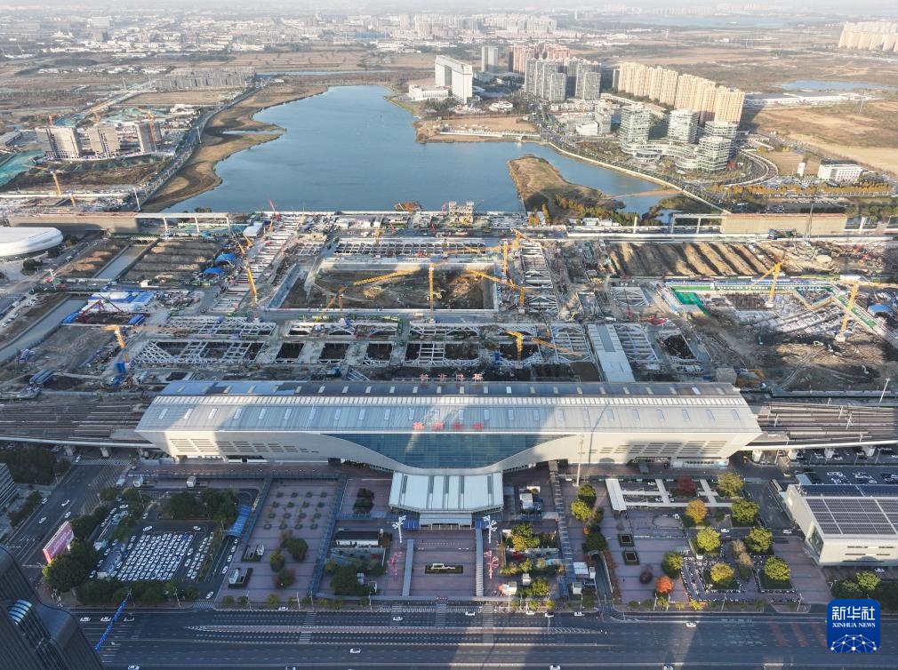 这是苏州北站综合枢纽工程建设现场(11月25日摄,无人机照片)。