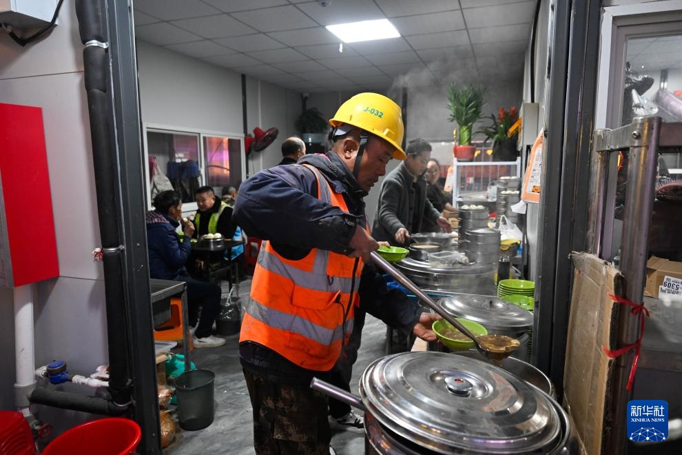 11月25日,工人下班后在苏州北站新时代建筑工人社区“商业街区”一家饭馆吃晚饭。