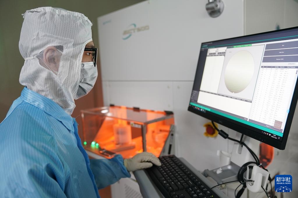 11月24日,在苏州迈姆思半导体科技有限公司,工程师对加工后的硅片进行检测分析。