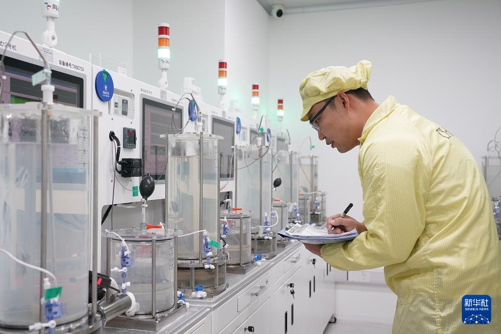 11月20日,在信达生物制药(苏州)有限公司,实验人员在提取信使核糖核酸。