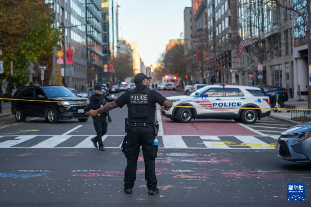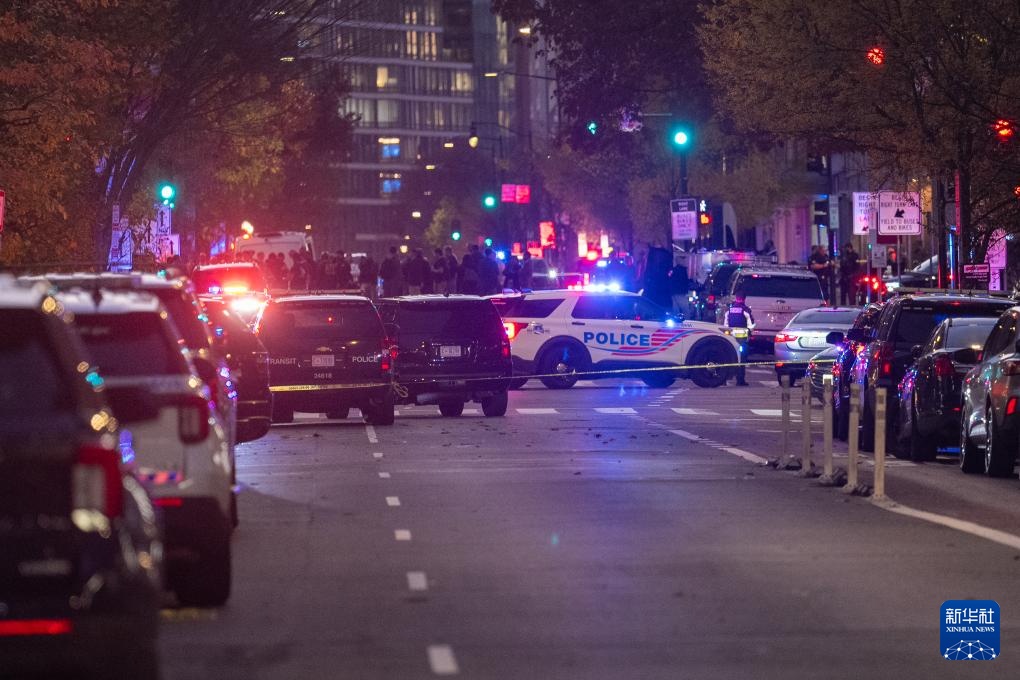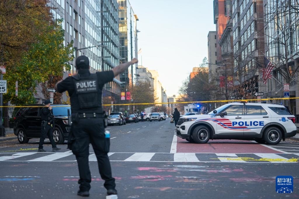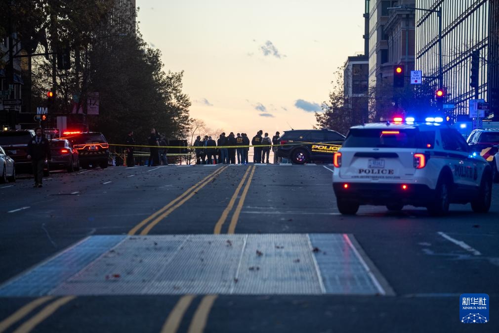 11月26日,在美国首都华盛顿,警方封锁案发现场附近街道。