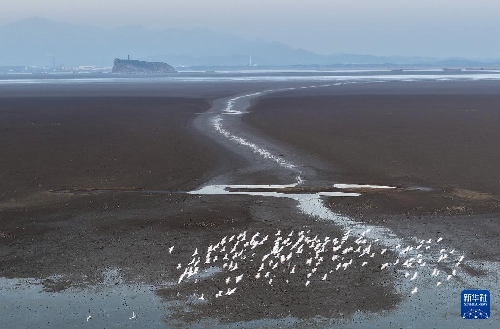 冬日暖阳洒满鄱阳湖,江西省湖口县鄱阳湖鞋山水域一派生机盎然。连日来,东方白鹳、白琵鹭等珍稀越冬候鸟,或翩跹栖息于滩涂,或低头在浅水中觅食,绘就成一幅和谐共生的生态画卷。