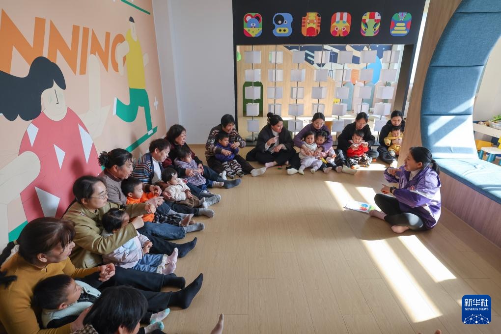 11月27日,在孝顺镇府东社区的党群服务中心,志愿者给低龄段儿童开展日间托育服务。