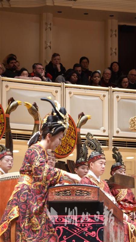 此次赴美巡演《编钟国乐》,湖北省演艺集团精心挑选乐曲,通过“金、石、丝、竹、匏、土、革、木”八音和鸣的形式呈现。2400年历史的编钟矗立在舞台中央,气势震撼,编磬、建鼓、瑟、埙等中国古乐器带来了非同凡响的音乐体验。整台音乐会表现了楚人积极进取、自强不息的精神,展示了中华文化的博大精深,演出现场掌声雷动,洋溢着喜庆热烈的节日氛围。