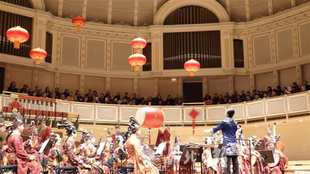 湖北日报讯(记者别鸣、通讯员朱雄)当地时间2月10日下午,湖北编钟国乐在美国芝加哥交响乐团音乐厅恢弘奏响。为庆祝中美建交40周年,湖北省《编钟国乐》演出团,于2月8日至21日赴美,参加2019年文化和旅游部“欢乐春节”巡演。
