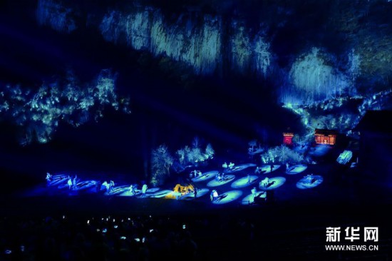 演员在《印象武隆》实景演出中表演(3月12日摄)。 新华社记者 刘潺 摄