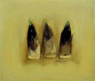 王文新画的一些瓜果、蔬菜、陶罐、树枝等,是在课堂教学中完成的。画室里,学生画,他也画,面对教学用的静物进行创作。他说,其实生活中的“小东西”总是有可画的。自己在教学中,也想向学生们传达这个观念。生活中从不缺少美,只是需要去发现。