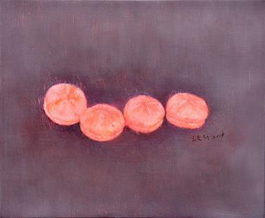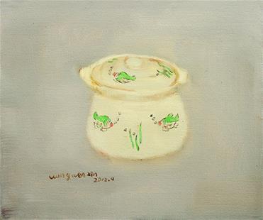 王文新创作的油画,画幅一般都不大,画面物体也少,很多只有一个物体,有的虽有两三个物体,也几乎是同类,并有着极其相似的外形,画面充满稚趣。然而,其构图、形体、色彩、笔触往往别有心思,在丰富与简约、深邃与单纯、立体与平面之间寻求着平衡。看似不经意的笔底,流露着淡然之趣,甚至带有几分安宁的禅意。