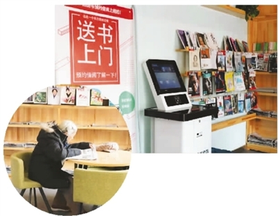 安贞街道文化服务中心24小时无人值守图书馆内设自动借还书机器,老人在此浏览报刊 李坤晋摄 |