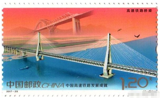 7年后,2017年11月25日,中国邮政发行《中国高速铁路发展成就》纪念邮票1套4枚,小型张1枚。邮票图案内容分别为高速铁路建设、高速动车整备场、高速铁路桥梁、高速铁路客站。小型张内容为复兴号动车组。全套面值10.80元。武汉天兴洲长江大桥作为高速铁路桥梁的代表,第二次登上邮票。