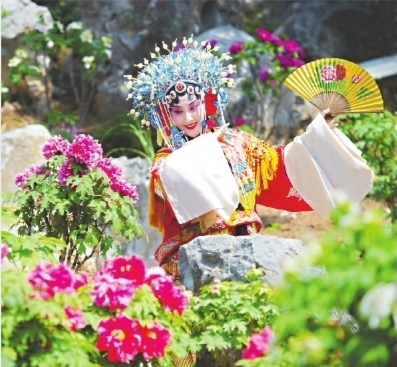 12日,武汉汉剧院的演员在东湖牡丹园牡丹亭下唱响汉剧《百花亭》,引来游人叫好