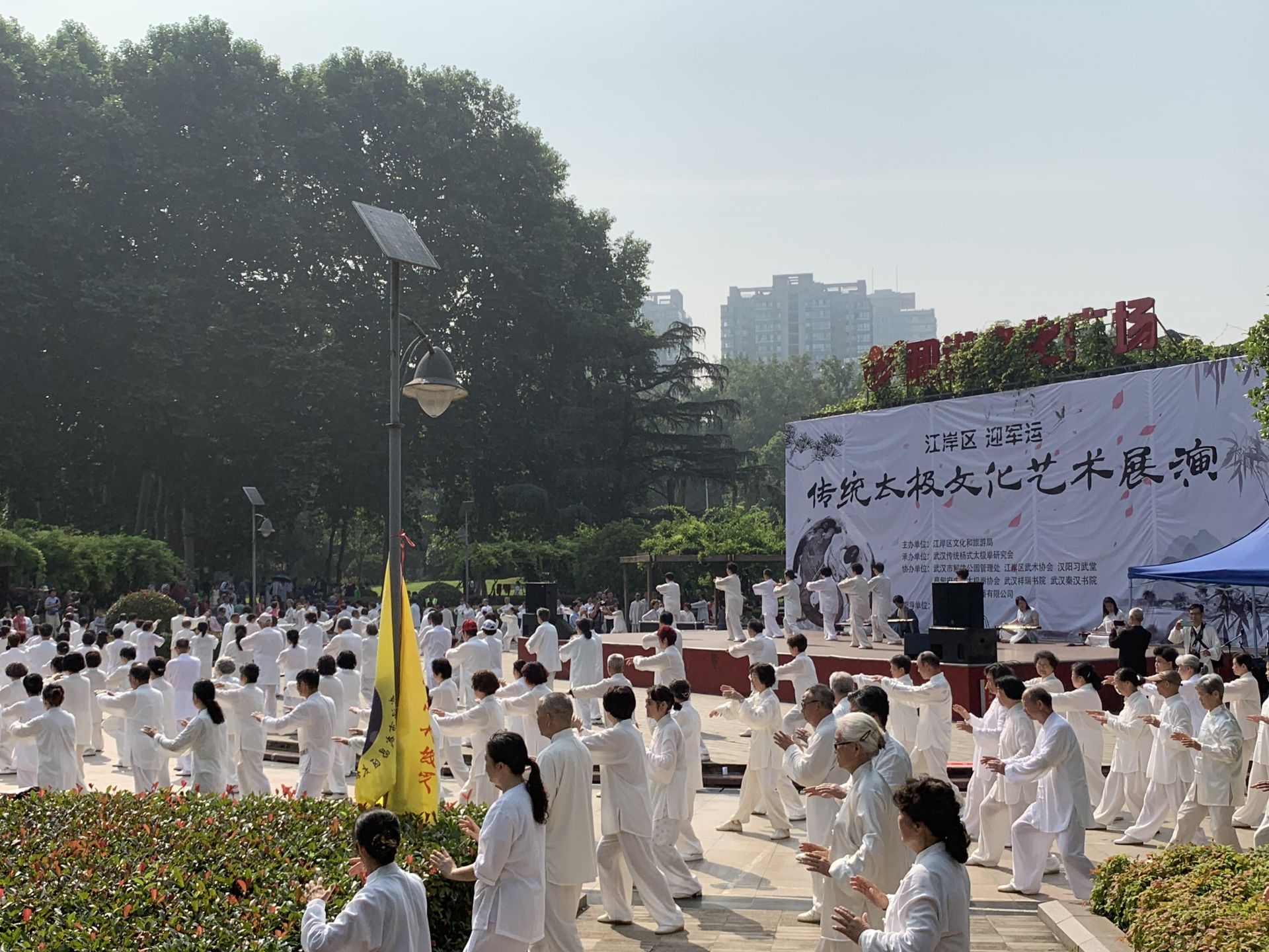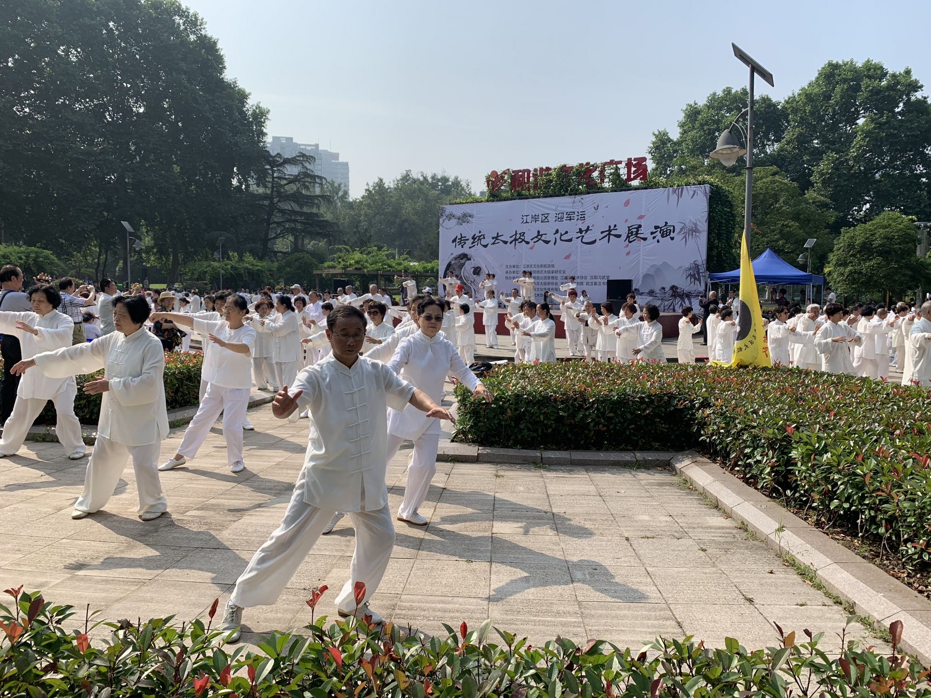 长江日报融媒体讯(记者陈俞 通讯员刘恋)6月2日一早,武汉解放公园和谐广场热闹非凡,来自武汉三镇的500余名太极拳友齐聚在此,共同参加“迎军运,传统太极文化艺术展演”活动。活动融入古筝表演、书画展示等多种艺术形式,带来一场文化大餐。