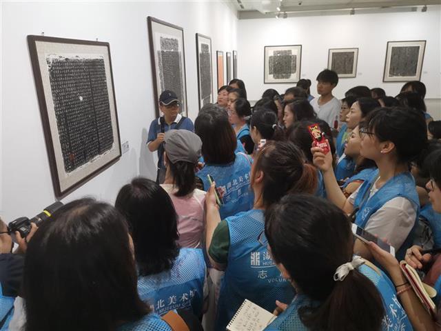 本次展览展区分为:历史名人墓志书法展区、楷行篆隶书法风格展区、互动体验区等,是对河洛地区唐代墓志书法艺术的一次集中展示和推介。特别值得一提的是,湖北美术馆作为本次巡展承办单位中的唯一一家美术馆,更希望从艺术的角度向观众呈现并让观众体验到唐代书法艺术的高超成就以及墓志中精美的纹饰、雕刻等艺术信息。于是,该馆公教部特别配合展览策划推出“梦回大唐——书、刻、拓艺术全体验”系列活动,并配合讲座及志愿者现场导览,观众观看展览的同时,还能进行互动体验,更为全面感受大唐的艺术风华。