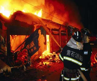 前晚,黄石市阳新县军垦镇14间连体商铺发生火灾,造成周围大范围停电。大火在一个多小时后被扑灭,但14间商铺已被烧毁,所幸未造成人员伤亡。目前,失火原因还在调查中。(楚天都市报)