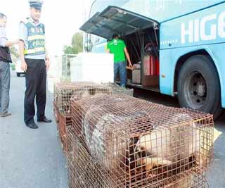 23日,随州警方在汉十高速随州收费站执勤时,查获一起客运车辆非法运输野生保护动物案,共查获省级保护动物猪獾、狗獾9箱,青蛙22箱,秧鸡6箱,华东环颈雉1箱,蛇1箱。目前,这批省级野生保护动物被依法放归大自然。(楚天快报)