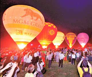 昨晚,夜幕下的黄陂木兰草原,被8个8层楼高的特大号“灯泡”照的如同白昼。30多个热气球喷枪火苗舞动间,全国最大规模热气球比赛揭开帷幕。黄陂区旅游局介绍,“2014黄陂全国热气球精英赛”持续到本月10日。每天除了可以到草原观看比赛,早上9点到10点间还可以参加体验活动,在运动员陪伴下亲自体验升上50米高空的感觉。(长江日报)