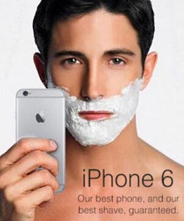 ▲iPhone 6还附赠“除毛”功能?日前,有网友发文称,每次通话时头发总是被不停拉扯,起初以为是头发黏到保护贴,后来发现竟是手机屏幕与铝框间缝隙卡到头发。该贴文引起不少网友共鸣,甚至有人恶搞制作出“苹果牌”刮胡刀广告。(中青网)