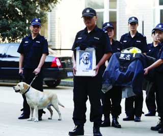 前天下午4时许,12岁的老警犬旺财吐出最后一口微弱的气息,“走”了。昨日下午4时许,在武汉市警犬基地院子里,阳光穿过茂密的香樟树隙,碎了一地。带犬民警马三生和几位民警用铁锨挖出一个小小的墓穴,这里 ,即将成为警犬旺财的长眠之地。11年来,旺财出色完成了党和国家领导人视察武汉、外国元首访问武汉等重特大安检任务400余起,是湖北省首条功勋警犬。(武汉晨报)