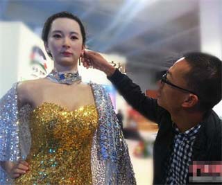 11日,以一身性感晚礼服惊艳亮相甘肃省第七届文博会展馆的“美女”机器人,能够完成点头、眨眼、摆手等动作,还可以进行简单的交谈,因其外形极其逼真,引得当地民众一试真假。(中新网)