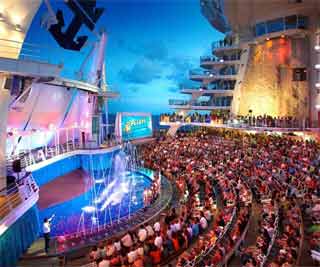 日前,世界最大游轮“海洋绿洲”号首次到达英国。游轮长达362米,宽63米,可容纳5400名乘客和2394名船员。图为“海洋绿洲”豪华内景。(人民网)