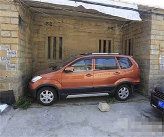 近日,福建晋江金井镇一辆SUV轿车停在一栋房子的凹槽里,车子长4.27米,凹槽长4.68米,宽1.82米,堪称“神停车”。来自湖北的车主陈仲良现场示范,倒了三把将车开出。(中新网)