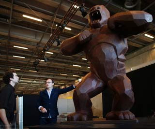 当地时间27日,法国一家巧克力制造商别出心裁,用巧克力制作了一个4米高的大猩猩“金刚”。(中新网)
