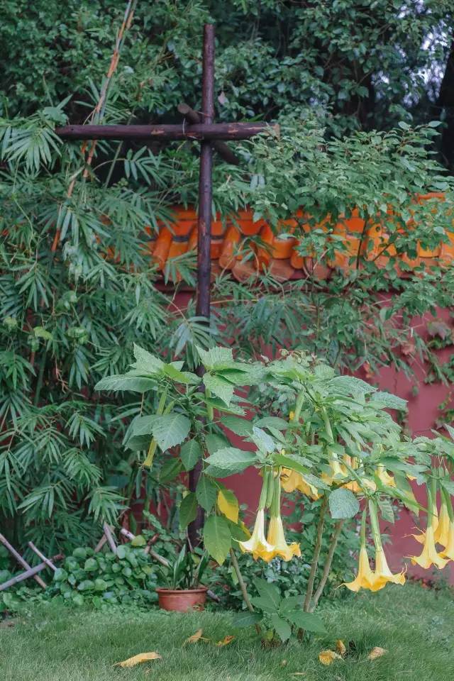 院中有两只孔雀,曼珠沙华开得正好,在花鸟环绕下品味名家画作,珍贵艺术品可谓一大享受。