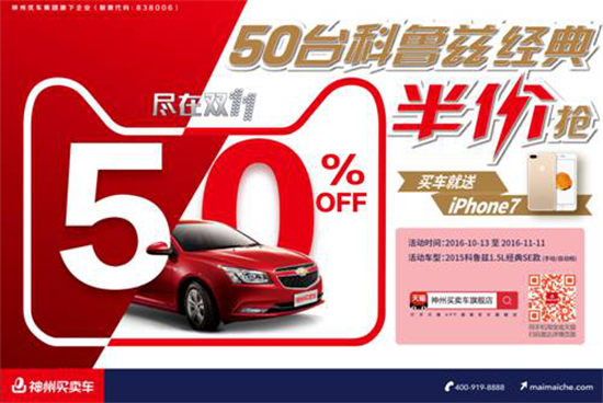 今年“双11”,神州买买车把其独有的“轻松买车”、“先享后买”购车理念进一步发挥到了极致。“双11”期间,在神州买买车购买科鲁兹经典,除了送iPhone7,可以参与50台半价车机会外,更吸引消费者的还是超低首付和超低月供。