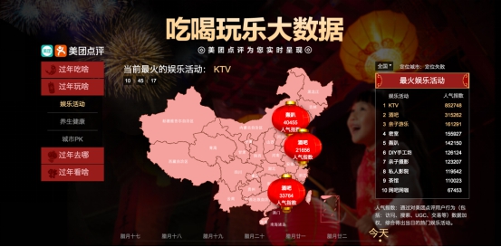 “春节是国民吃喝玩乐消费的旺季,从2015年开始,美团点评数据研究院都会在春节期间发布‘年味地图’,用大数据看年味,此次发布的‘吃喝玩乐大数据’正是基于‘年味地图’的沉淀升级改版而来。在即将到来的鸡年春节期间,我们的‘吃喝玩乐大数据’产品将实时呈现全国各地的春节消费热点。”美团点评数据研究院相关负责人表示。