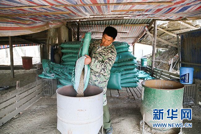 图为李又先在为鸭子准备饲料。新华网连迅 摄