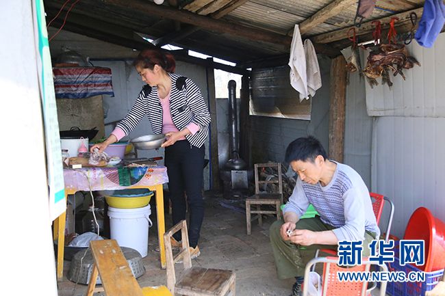 图为李又先和妻子一起生火做饭。新华网连迅 摄