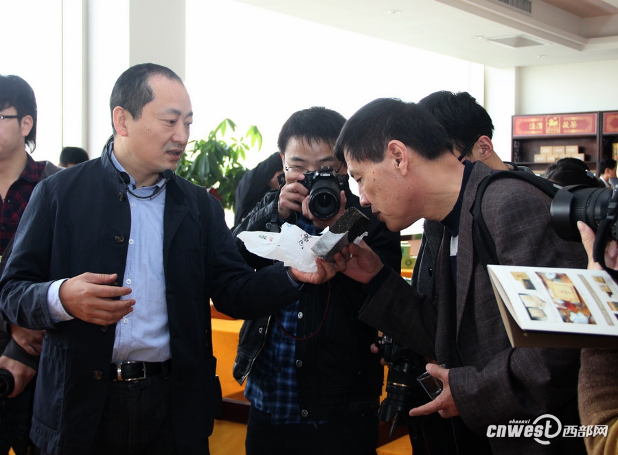 咸阳泾渭茯茶有限公司董事长纪晓明向记者介绍泾渭茯茶。