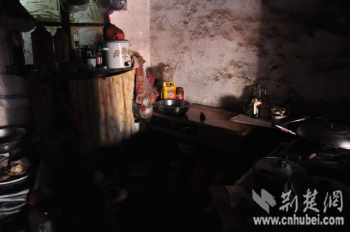 一户棚户区居民家,连着卧室的破旧厨房