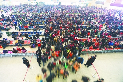 昨天,汉口火车站旅客明显增加,迎来春节前最后一波客流高峰,当天发送旅客达9万余人次。 记者何晓刚 通讯员李刚 摄