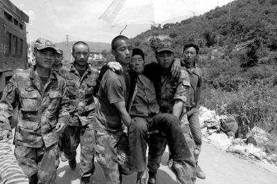 第一批赶到震中的先遣队——云南省武警总队昭通支队政治处副主任胡河说,全体官兵奉命轻装徒步前进,随身只带了一点矿泉水和干粮。这些早期赶到龙头山镇的救援人员见证了“浑水泡面”一幕:群众架锅烧水,各方救援人员排队泡面。