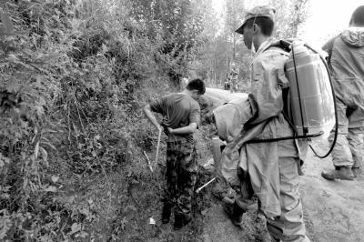 昨天,记者在灾情严重的龙头山镇看到,防疫工作已全面展开。在骡马口安置点和震中龙头山等地区,防化兵和地方防疫人员正在进行消毒。担负任务的是第14集团军防化团某营,该营是西南地区唯一成建制防化兵,拥有汶川地震防疫经验,也是本次地震第一个进入灾区、第一支进村入户的防化兵。