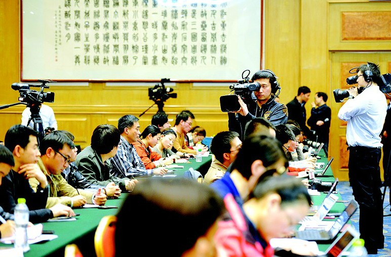 图为:媒体聚焦湖北代表团媒体开放日。