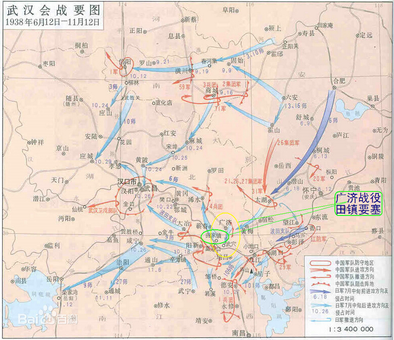 武汉外围要塞阵地均被日均攻陷,武汉被三面包围,蒋介石下令放弃武汉,撤退武汉外围 部队